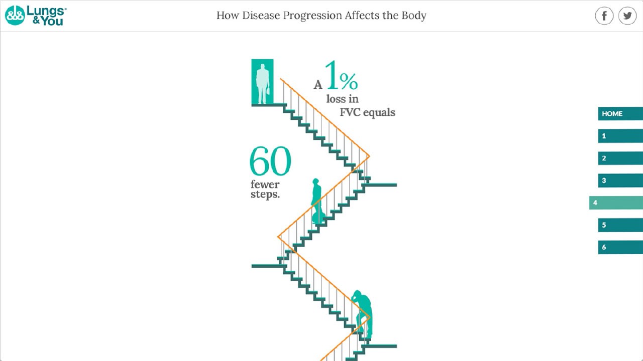 Develop an interactive feature story that visually and narratively demonstrates IPF progression in an accessible, shareable way.